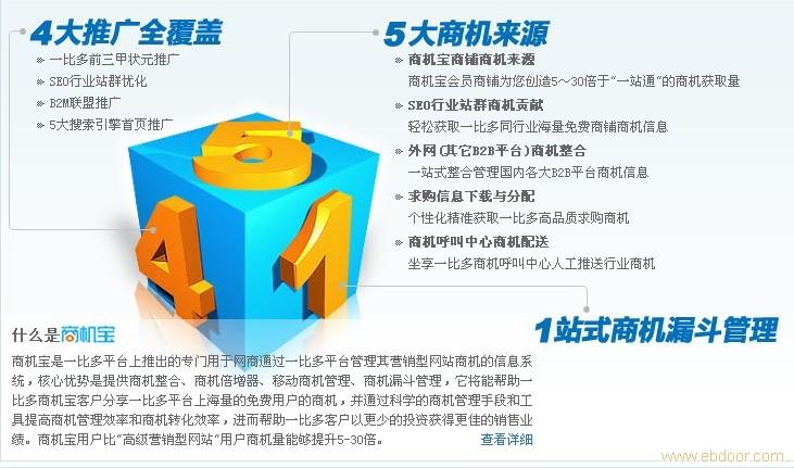 产品说明:网络营销商机宝是一比多平台上推出的专门用于网商通过一比多平台管理其营销